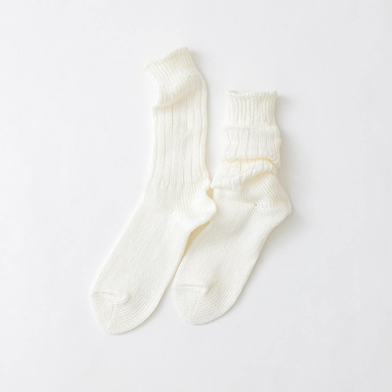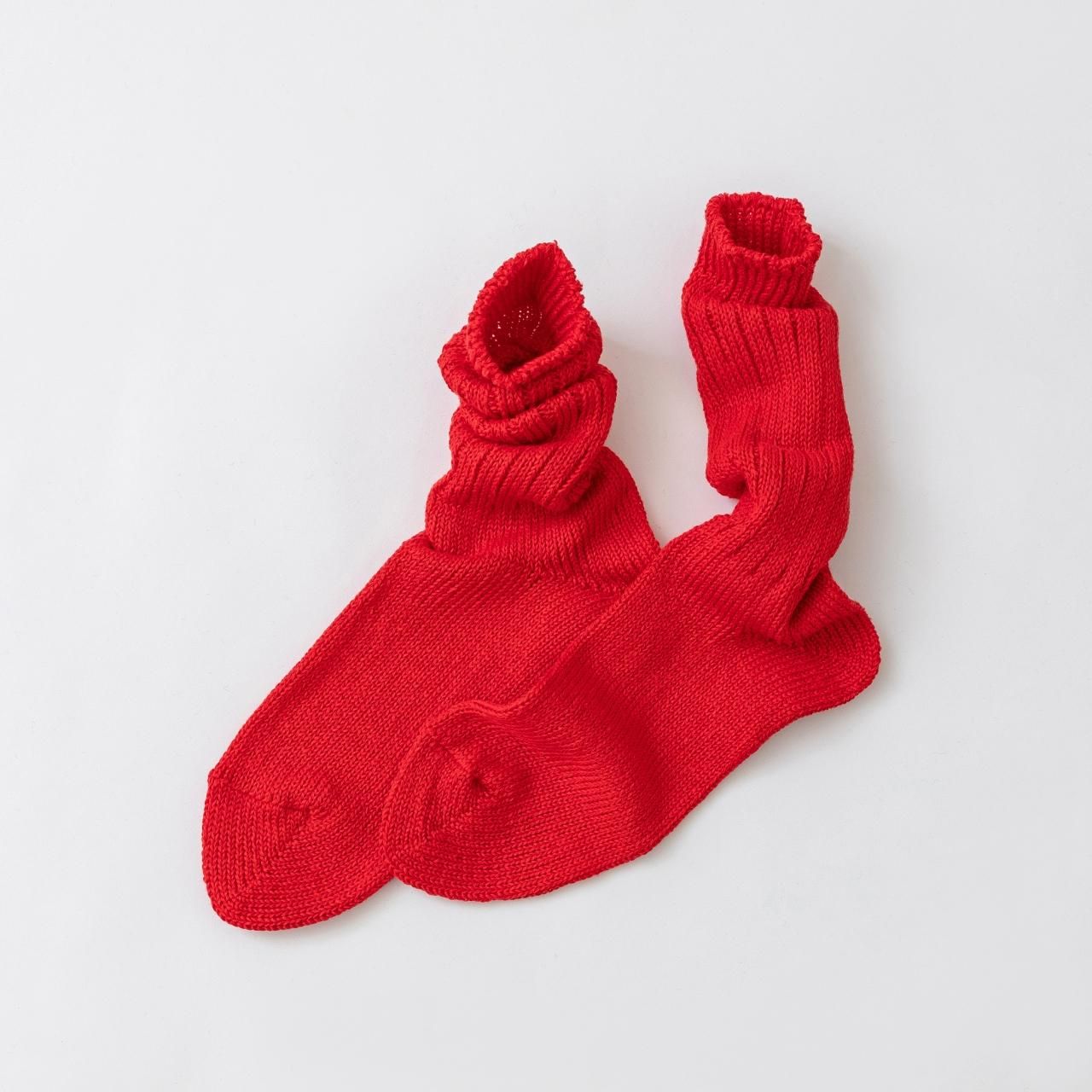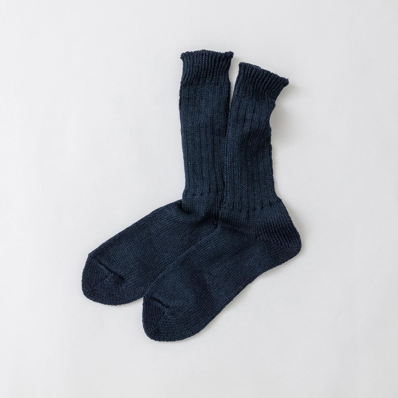 カジュアルソックスのイメージがつよいローゲージのくつ下ではなかなか使われることのなかった高品質の天然素材をたっぷりと贅沢につかい、丁寧にゆっくりと編みあげています。