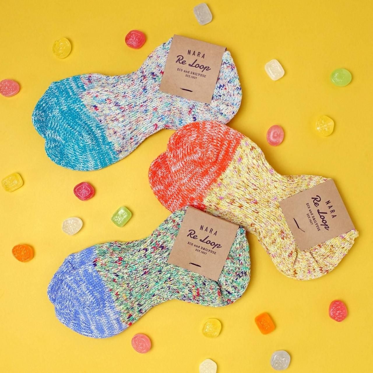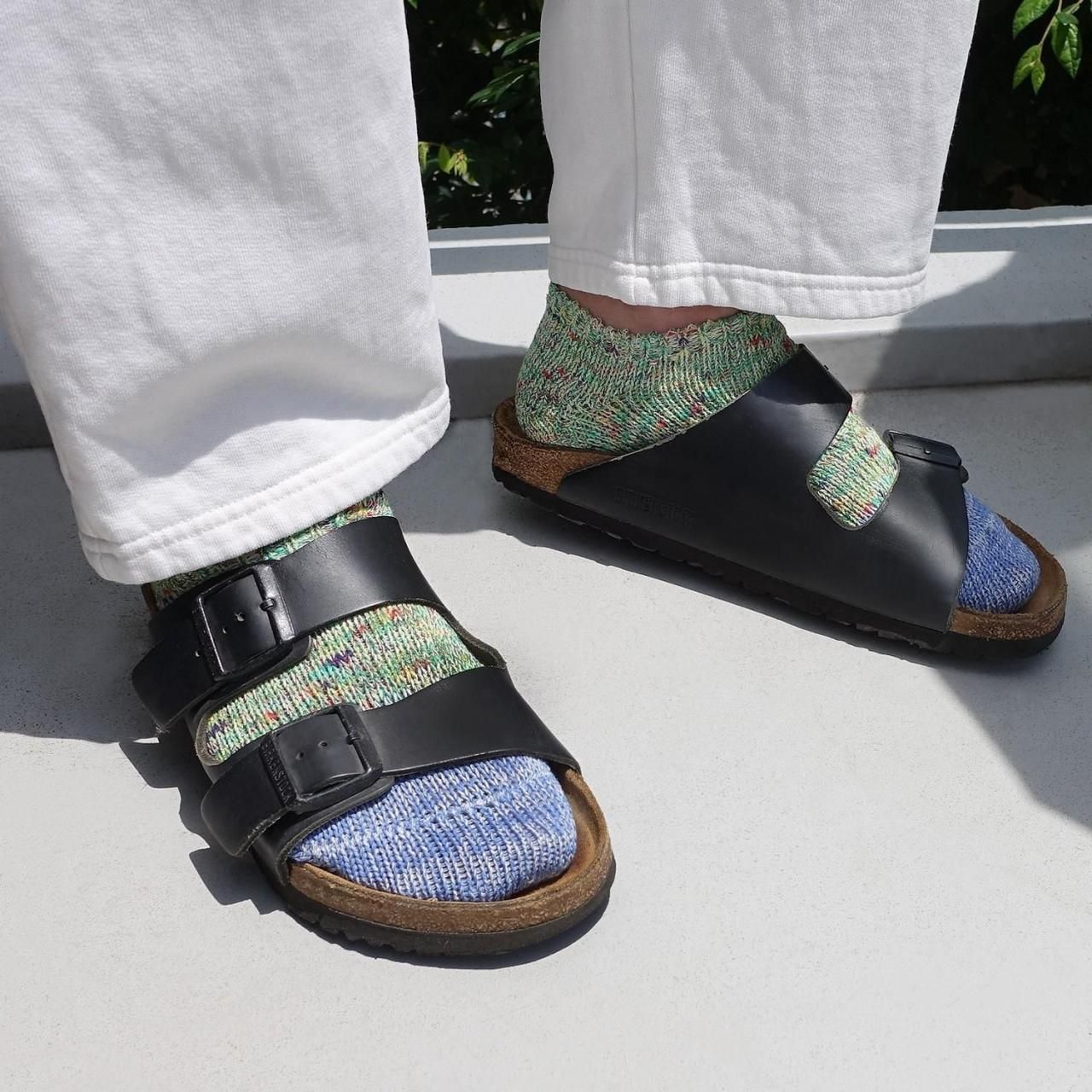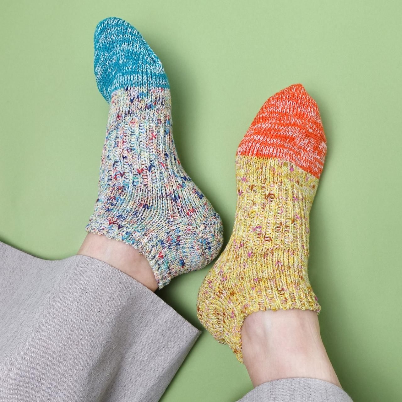 ■つま先部分が切り替えの柄になっており、カラフルな糸使いが特徴です。